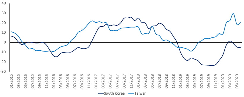 South Korea and Taiwan are in a much better position than their south Asian peers thanks to their progress so far in controlling Covid-19 and their economies’ focus on technology exports
