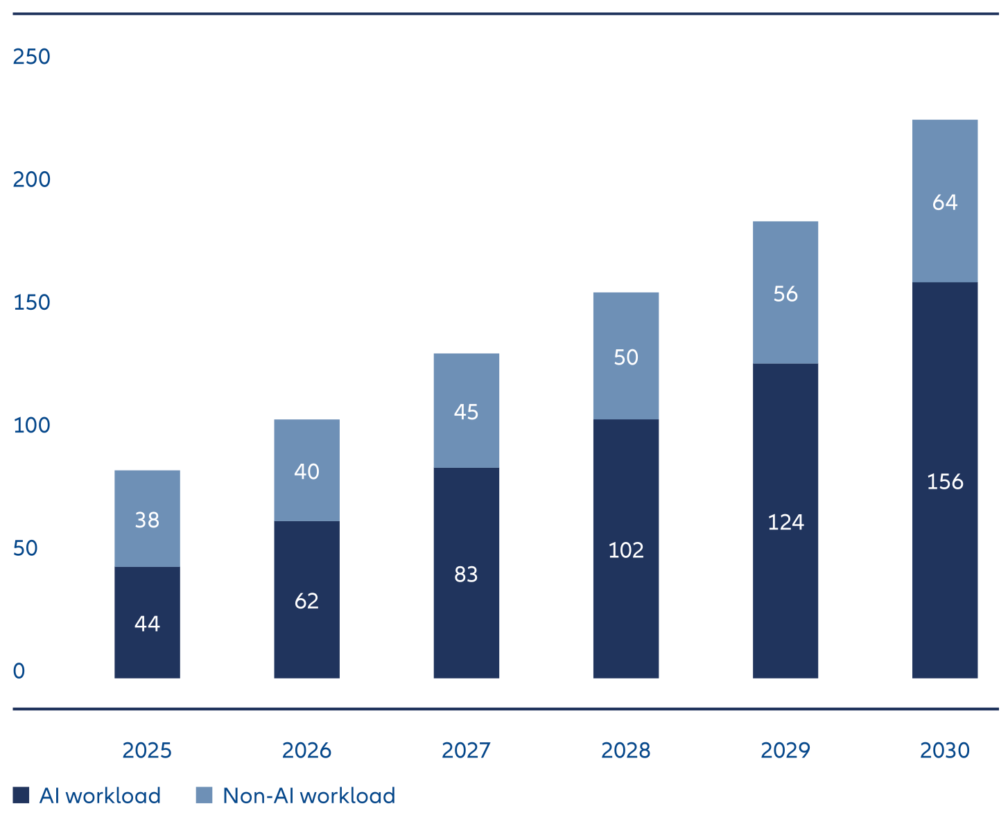 Exhibit 2: Estimated global data center capital demand, continued momentum scenario, in gigawatts
