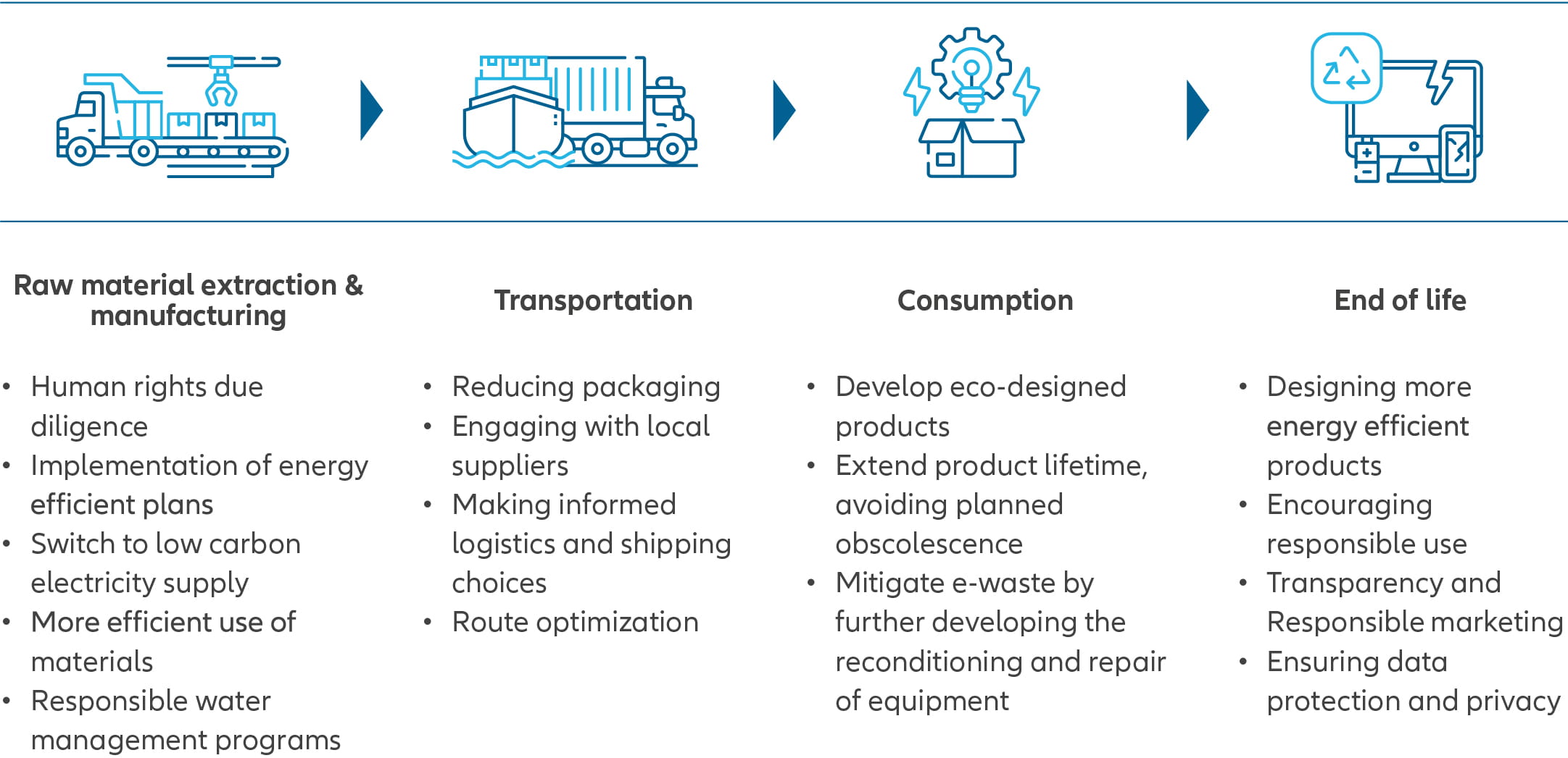 - Circular solutions: moving from planned obsolescence to circular business models with a more considered approach to frequent tech upgrades.