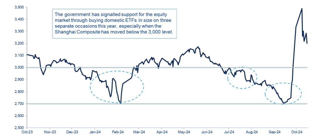 - There have now been three key moments this year when the government has stepped in to stabilise equity markets during periods of particular weakness – the first time was in January, then again in July/August, and most recently at the end of September.