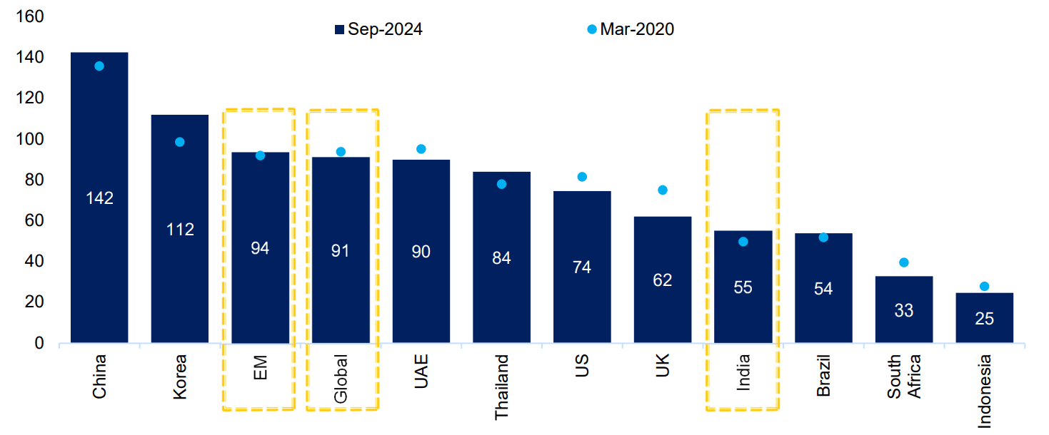 - While much of the rest of the world is grappling with significantly higher debt levels, especially since Covid-19, Indian government, household and corporate balance sheets are generally in good shape.