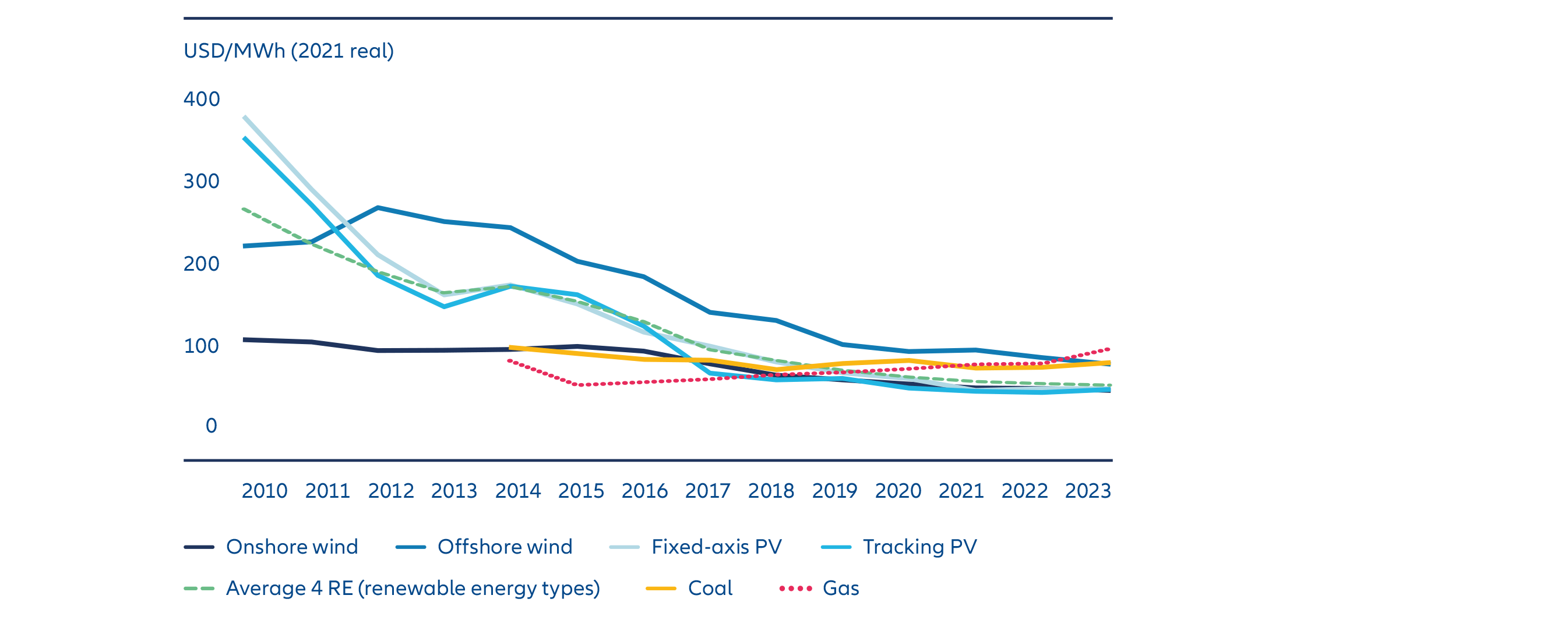 *Levelised cost of electricity: the long-term offtake price on a MWh-basis required to recoup allproject costs and achieve a required equity hurdle rate on the investment, Bloomberg.
